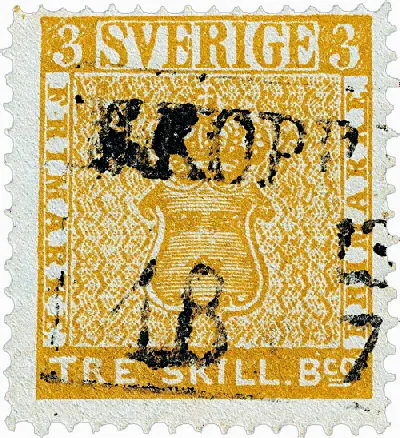 Przetrwał do dzisiaj dzięki 14 letniemu chłopcu Georgowi Wilhelmowi Backmanowi, który wydostał go z kosza na śmieci swojej babci w 1885 roku a następnie sprzedał handlarzowi Heinrichowi Lichtensteinowi za 7 koron szwedzkich. Znaczek został wyemitowany w 1855 roku i użyty do wysłania listu w 1857 roku. Został wydrukowany w kolorze żółtym przez pomyłkę, bo właściwie powinien być zielony, co czyni go tak niezwykle cennym. Dodatkowo jest on prawdopodobnie jedynym ocalałym takim znaczkiem na świecie, bo przypuszcza się, że przez pomyłkę zostało wydrukowanych więcej sztuk.